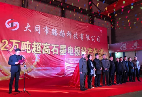 大同新成新材和南通高杨共同投资建设年产2万吨超高功率石墨电极项目签约仪式和投产仪式。